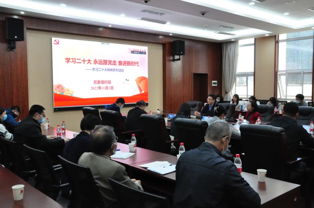 11月3日,党委组织部在南望山校区教学综合楼A701会议室以线上线下相结合方式举行学习贯彻党的二十大精神辅导报告会。党委组织部、统战部部长、机关党委书记陈文武,学校特邀组织员、专职组织员、兼职组织员,机关党委委员、纪委委员,机关各党支部书记、委员,李四光学院学生党员和重点发展对象,公共管理学院法学专业171201班预备党员及重点发展对象参加学习。报告会由正处级专职组织员刘国华主持。