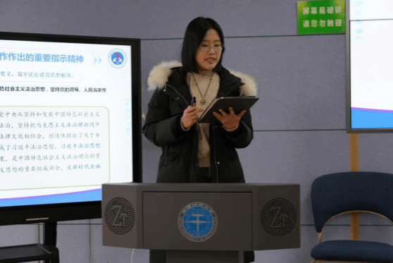 青马明德党支部牵头领学。支部代表张荣菲同学围绕习近平法治思想的核心要义、法治建设重点任务以及各级党组织的法治建设责任等关键内容分享学习心得,并结合新时代法治中国建设的鲜活案例,阐释法治中国建设的理论逻辑与实践路径。