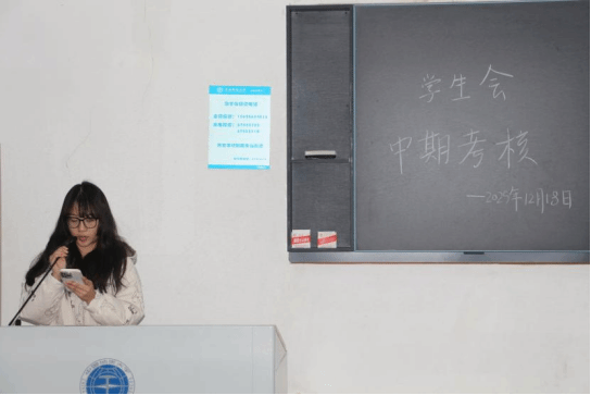 为系统总结工作成效,加强组织内部建设,促进成员交流融合,2025年12月18日,在线买世界杯平台学生会中期考核暨学生会茶话会于北综楼211教室举行。本次活动由学生会办公室干事胡越尧、文体部干事袁梦婷主持,全体学生会成员共同参与。