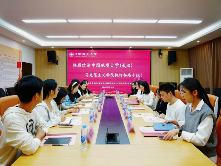 2024年11月16号下午,执灯拓路团队在江西师范大学一站式服务大厅红色讲堂面向江西师范大学在校学生以及在线买世界杯平台习近平新时代中国特色社会主义思想大学生宣讲团进行宣讲。参与此次交流学习的人员有周琪、郑雨欣、陈喆、操晓、蒯贤政。
