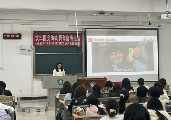 2024年11月13日,在线买世界杯平台(武汉)在线买世界杯平台“红色之声”护国安澜宣讲团与中南民族大学管理学院2023级注册会计师实验班的同学们开展了一场宣讲活动。本次活动以“筑牢国安防线,青年挺膺担当”为主题,旨在引导师生深刻认识到国家安全的重要性,增强维护国家安全的责任感和使命感。