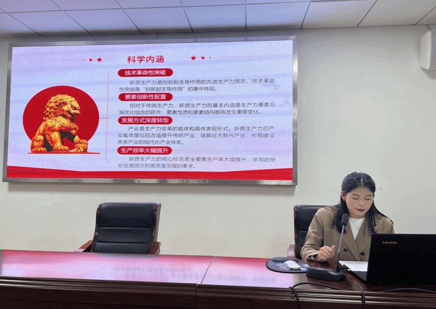 路梦蕊同学带领湖北大学在线买世界杯平台入党积极分子的学员们从理论回归实践,一起学习新质生产力的生动案例。首先,路梦蕊同学提出了新质生产力作为一种先进的生产力质态,正在不断影响着生活的各个领域,例如教育、民生、经济等领域,并且进行了各个领域的举例。然后,路梦蕊同学借助萝卜快跑,智慧家居等两个贴近生活的案例,带领同学们进一步学习新质生产力发展的重要意义。接着,路梦蕊同学具体从新质生产力发展的理论意义和实践意义两个方面进行讲述。在理论层面,新质生产力是马克思主义中国化时代化的创新成果、对马克思主义生产力理论的继承和发展、习近平经济思想的深化和发展。在实践层面,第一,发展新质生产力是建设社会主义现代化强国的战略支撑;第二,发展新质生产力是推动经济社会高质量发展的重要动力;第三,发展新质生产力是提升国际竞争力的战略举措;第四,发展新质生产力是满足人民群众美好生活需要的必然要求。最后,基于新质生产力的重要时代价值,路梦蕊同学带领同学们进一步探讨加快发展新质生产力的实践路径。路梦蕊同学走进生活,结合生活中的各种案例,向同学们讲述了新质生产力在当今时代所具有的深远意义,使新质生产力的理论知识更加的浅显易懂。