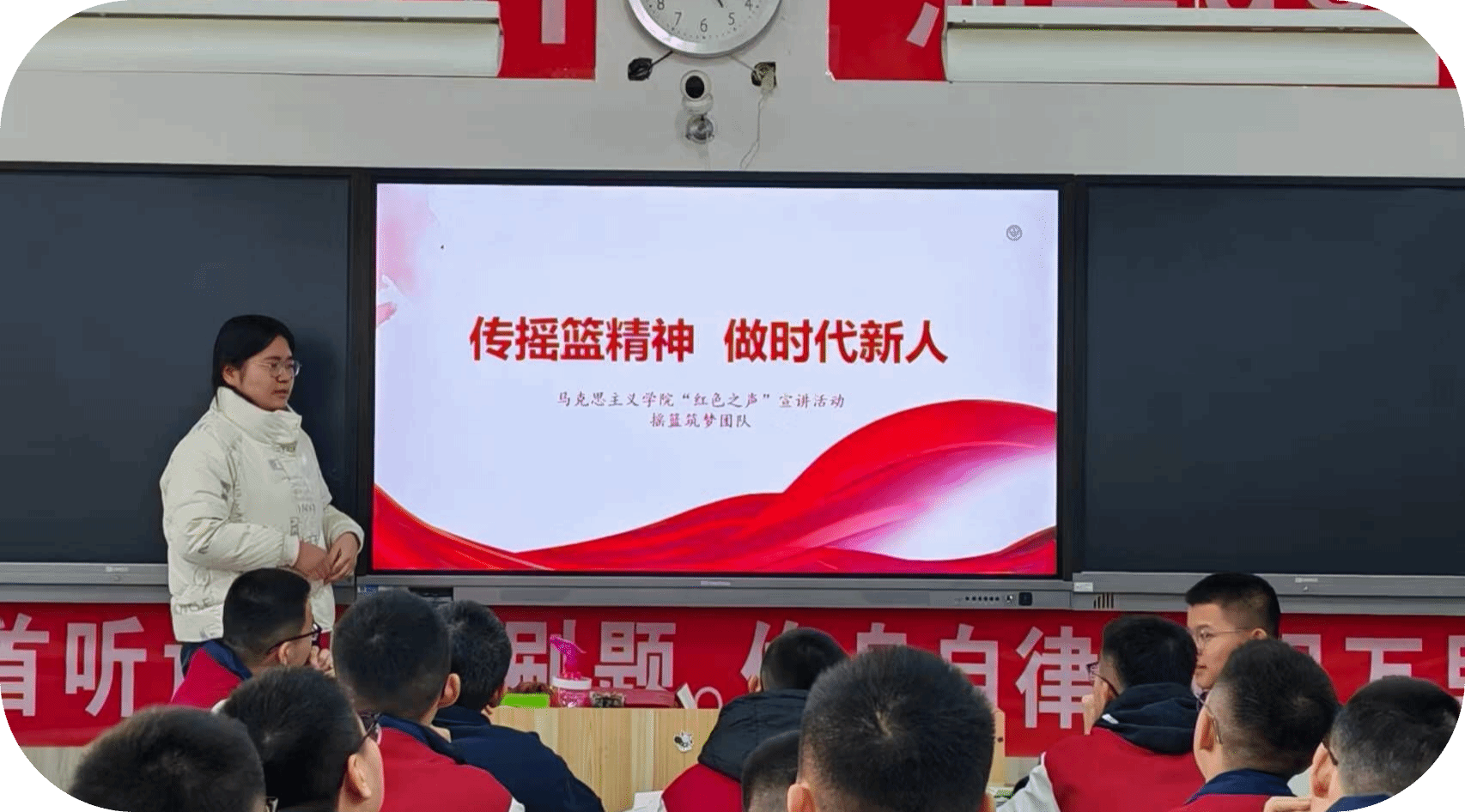 2025年1月13日17点,在线买世界杯平台第十五期红色之声“摇篮筑梦”团队在线下进行了主题为“传摇篮精神,做时代新人”的线下宣讲,团队成员辛汪洋担任主讲人,阳谷高中高二一班共1个团支部参与本次活动,共计50名同学。