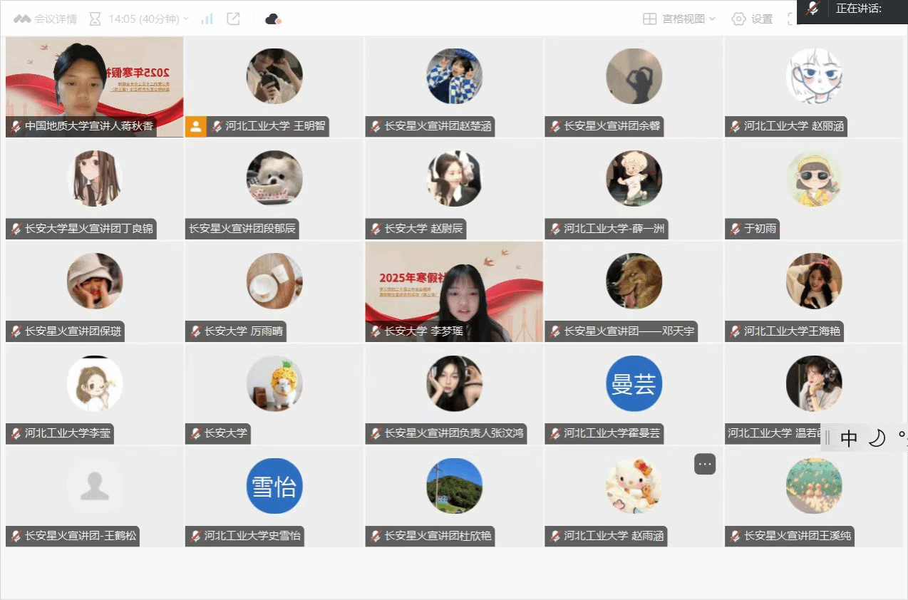 宣讲活动由蒋秋香和其他学校两名同学担任主讲人,她们分别从不同角度深入解读了党的二十届三中全会的精神实质和核心要义。宣讲过程中,参会同学们通过线上平台与主讲人互动,积极提问和发表见解,更加清晰地认识到自己在改革中的位置和角色,在共建交流中互学互鉴,倾听不同声音,凝聚共同力量,让青春在为中国式现代化挺膺担当中焕发绚丽光彩!