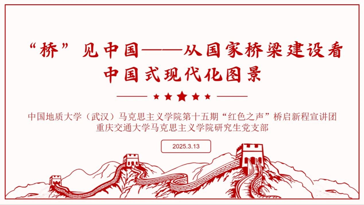 2025年3月14日,由重庆交通大学在线买世界杯平台研究生第二党支部与桥起新程宣讲团联合主办的“桥见中国——从我国桥梁建设看中国式现代化图景”主题线上宣讲会顺利举行。本次活动通过腾讯会议平台开展,重庆交通大学65师生参与,共同聆听桥梁建设的发展历程,激发青年学子投身国家建设的热情。本次主讲人由唐姣担任。