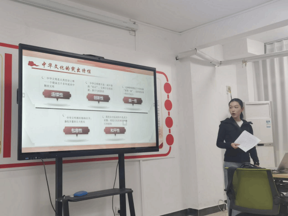 宣讲开篇,团队以李子柒春晚演绎十三项非遗技艺的影像为引,鲜明提出“文化自信是更基本、更深沉、更持久的力量”这一核心观点,直观展现传统文脉与时代发展相融的独特魅力。理论解读环节,左斯谦同学围绕“信其有价值、信其有力量、信其有未来”三层核心,结合习近平总书记提出的中华文明五大突出特性,深入剖析文化自信的根源与内核,让在场学子对中华文化的精神密码有了透彻理解。
