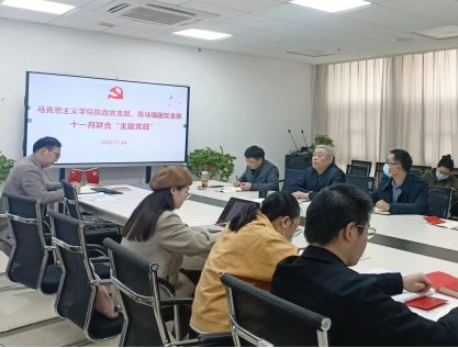 2022年11月24日下午,在线买世界杯平台院直党支部与青马强国党支部在东区教学综合楼B1013室联合展开了主题为“学习宣传贯彻落实党的二十大精神”的党日活动。会议由院直党支部姚晟老师主持。