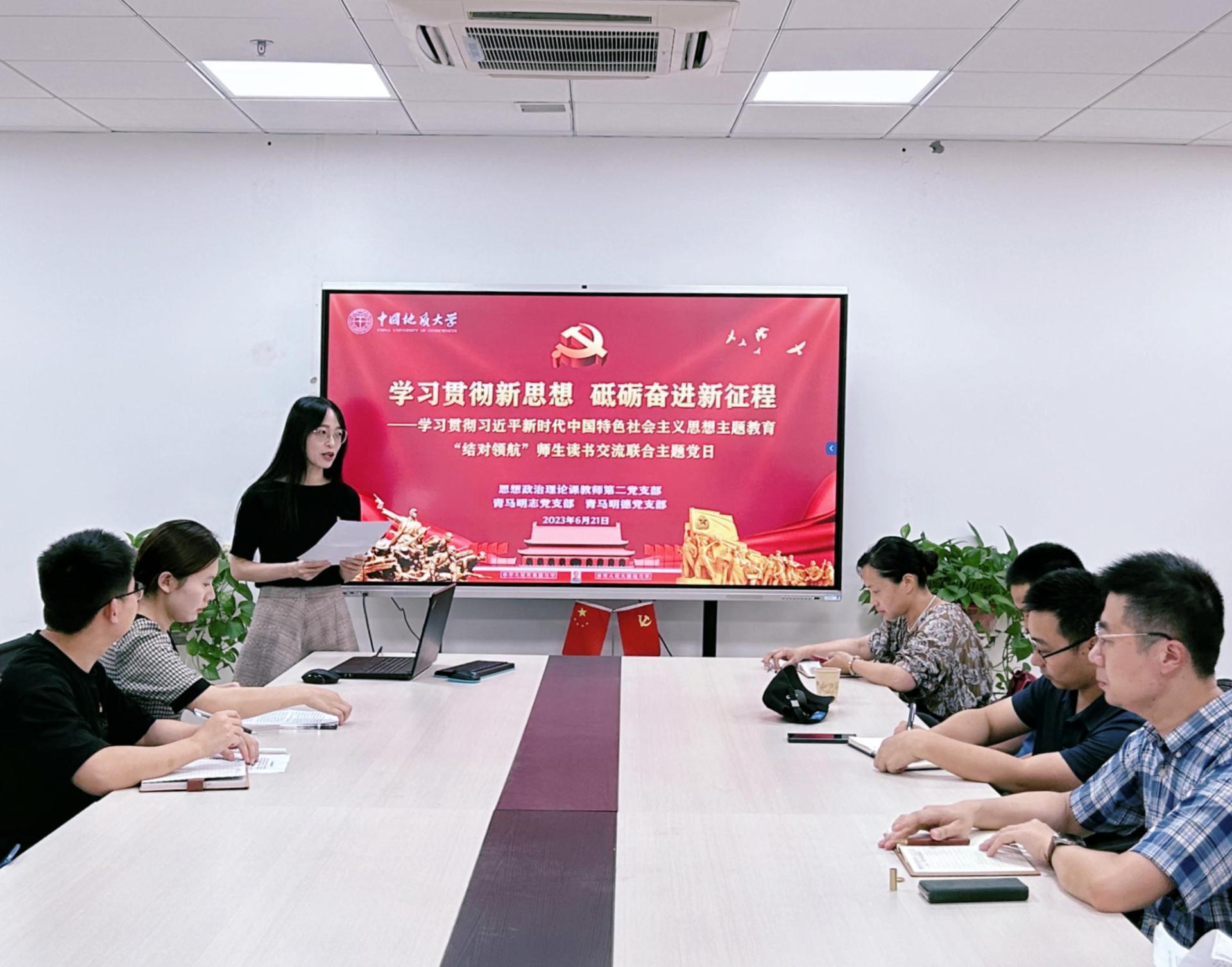 (通讯员:陈雅文、曹艺、李蔚然)2023年6月21日下午14时30分,在线买世界杯平台(武汉)在线买世界杯平台思想政治理论课教师第二党支部联合青马明志党支部、青马明德党支部在东教楼B1013会议室召开“学习贯彻新思想,砥砺奋进新征程”暨学习贯彻习近平新时代中国特色社会主义思想主题教育师生结对领航读书交流会,本次活动由党支部书记李蔚然同志和冯晓宇同志共同主持,师生党支部全体同志参与。