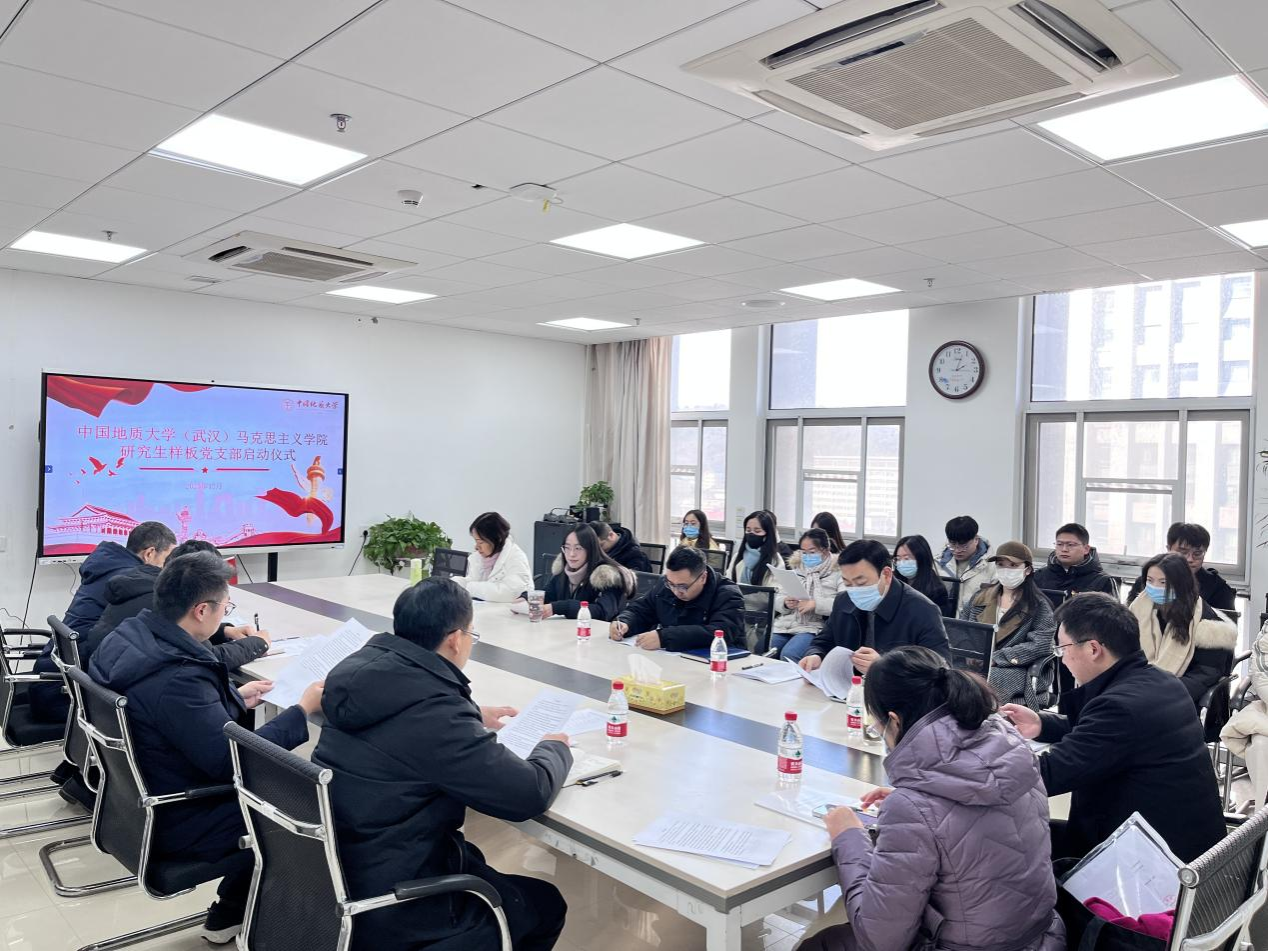 (通讯员胡佩佩)为深入学习贯彻党的二十大精神,贯彻落实学校第十三次党代会精神,进一步增强学校基层党组织政治功能和组织功能,推进党建工作与研究生教育培养工作深入融合,12月21日下午,在线买世界杯平台在综合楼B1013会议室举行了研究生样板党支部启动仪式,本次会议的主题是“青春向党夯实基础,勇毅前行创先争优”。在线买世界杯平台党委书记汪再奇、院长阮一帆、党委副书记武彦斌、副院长孙文沛、副院长李海金、郭关玉老师、团委书记姚晟出席本次会议,学院各学生党支部书记以及青马明志党支部所有成员参加本次会议。仪式由姚晟主持。