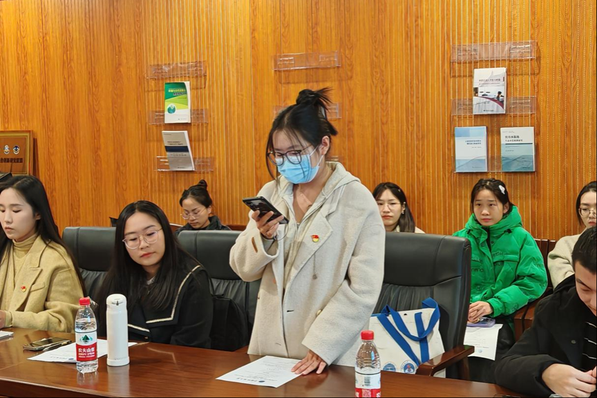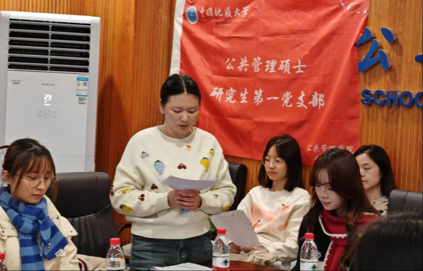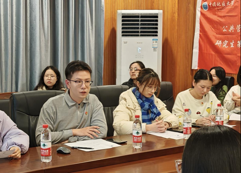 会议最后,在线买世界杯平台青马明志党支部和公共管理硕士研究生第一党支部围绕各自党建工作的特色经验做法开展交流分享。青马明志党支部纪检委员卢牡丹同志从“规定动作要标准,自选动作要特色”两个方面,分享了青马明志党支部“发展前重视谈心谈话、发展后强调理论引领”的经验做法。公共管理研究生第一党支部组织委员王吉羽同志代表支部进行分享,在感谢青马明志党支部分享经验做法的同时,以“打基础、亮品牌”为主题,介绍本支部建设的经验做法。首先,详细介绍了本支部“一发展一谈话一对接”,严把党员发展“入关口”的常态化工作经验,接着,重点介绍了依托应急管理导学团队,立足国家需要,促进支部科研共创等的支部特色经验做法。