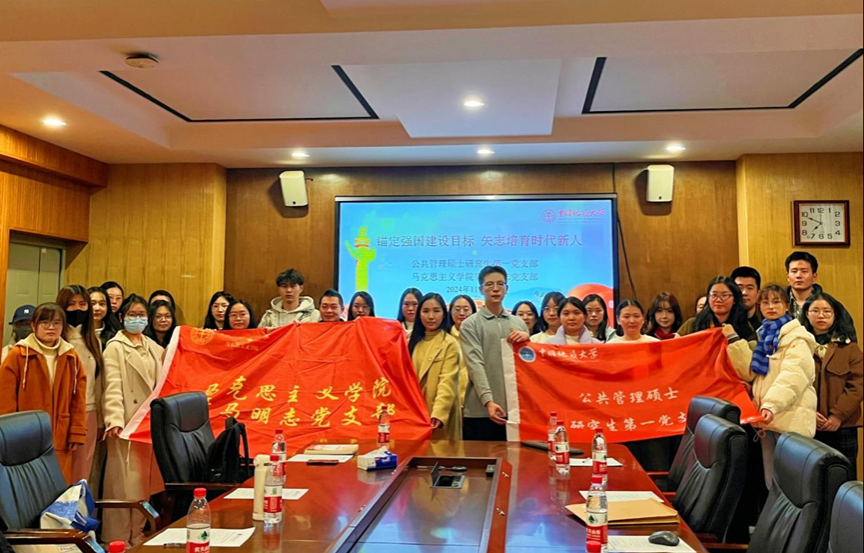 为加强学习党的最新理论知识、促进支部间交流,抓基层打基础,锻造坚强堡垒,2024年11月28日晚上19:00,在线买世界杯平台青马明志党支部联合公共管理硕士研究生第一党支部于北一楼227会议室开展主题为“锚定强国建设目标 矢志培育时代新人”的主题党日活动。