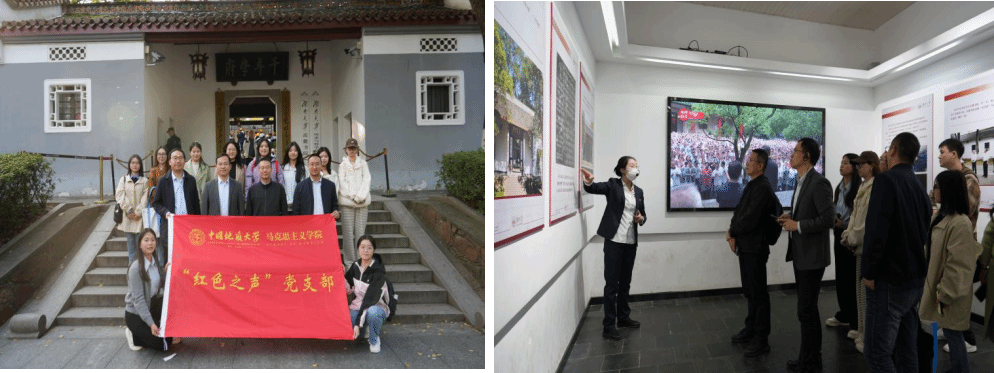 “红色之声”党支部师生代表一行前往岳麓书院,沉浸式感知湖湘文化,从中华优秀传统文化中汲取文化自信的力量。支部师生代表在参观中进一步深化了对“第二个结合”的感悟与理解。