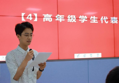 研究生会执行主席钟绍斌代表高年级学生发言。他以自己在地大马院学习生活了5年的经历,从课程学习到社会实践,从专业知识到学生工作等方面,分享了三点心得体会:一是确定目标、锲而不舍,二是锻炼能力、施展才华,三是坚持不懈、久久为功。他祝愿同学们有敢于做自己的勇气、坚持做自己的毅力,始终有顺应世界的坚忍和改变世界的雄心,心怀理想而恒志笃行,站在新的起点上脚踏实地、仰望星空,做一个有理想、有担当的马院学子。