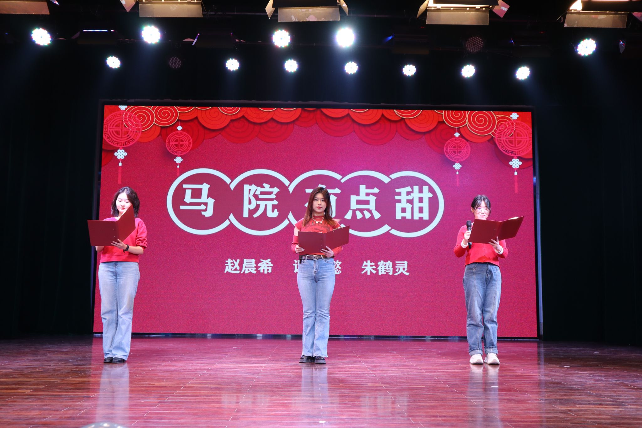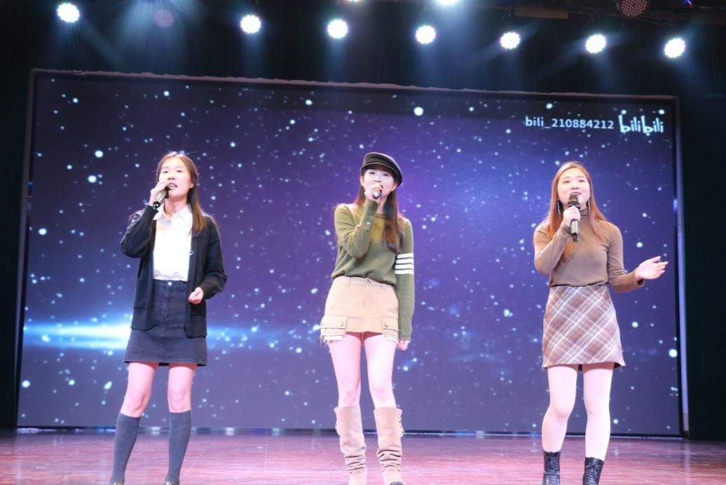 图8:赵晨希、朱鹤灵和谭思懿诗朗诵《马院有点甜》