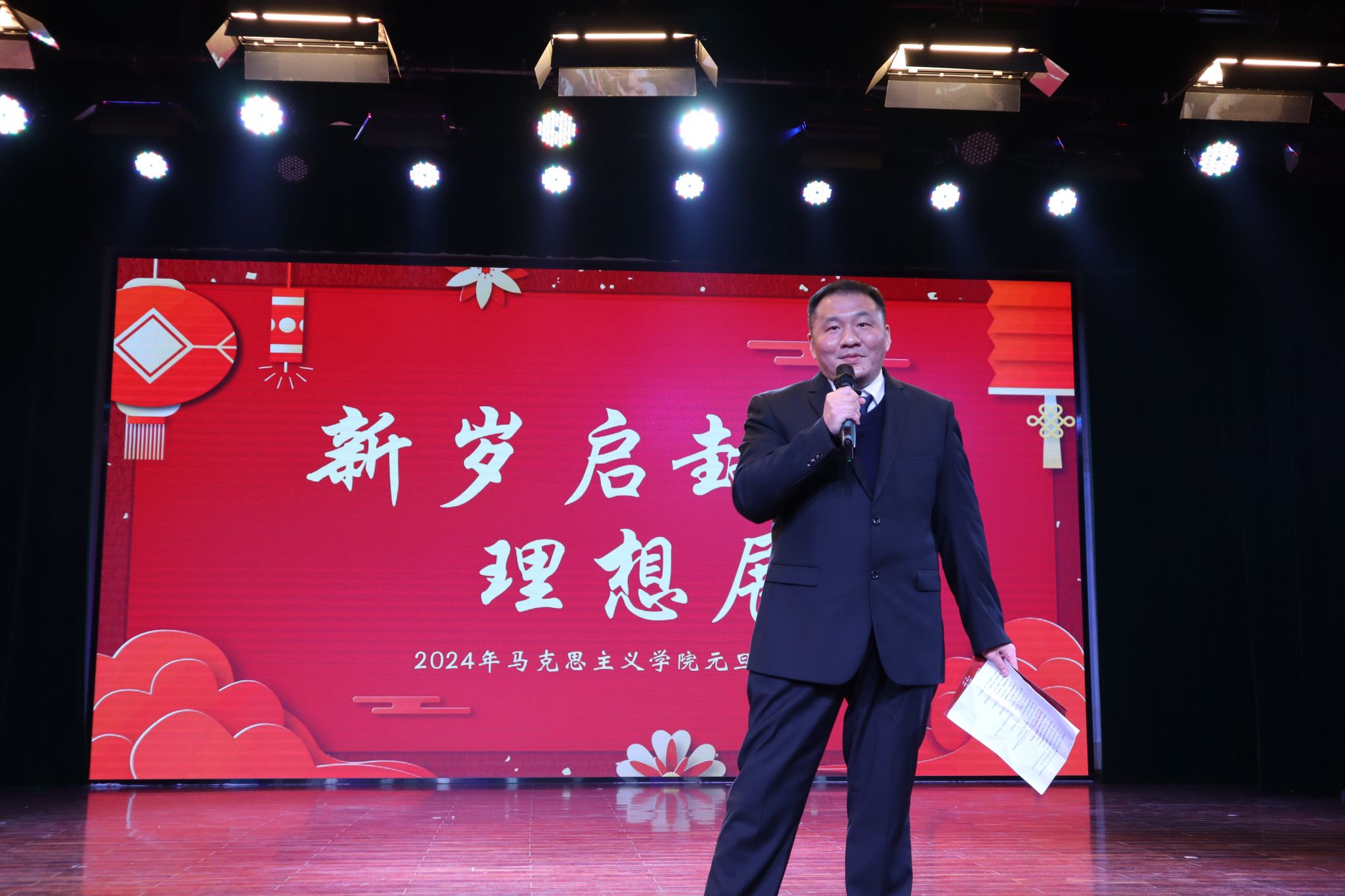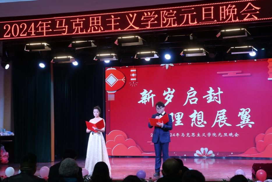 晚会开始前,院长阮一帆致以新年贺词总结2023年在线买世界杯平台成就,展现马院担当,深入开展理论宣讲,科学研究硕果累累,学院治理能力和体系稳步推进,基层组织和功能逐步凸显,展望2024将是马院人奋斗收获的新篇章。