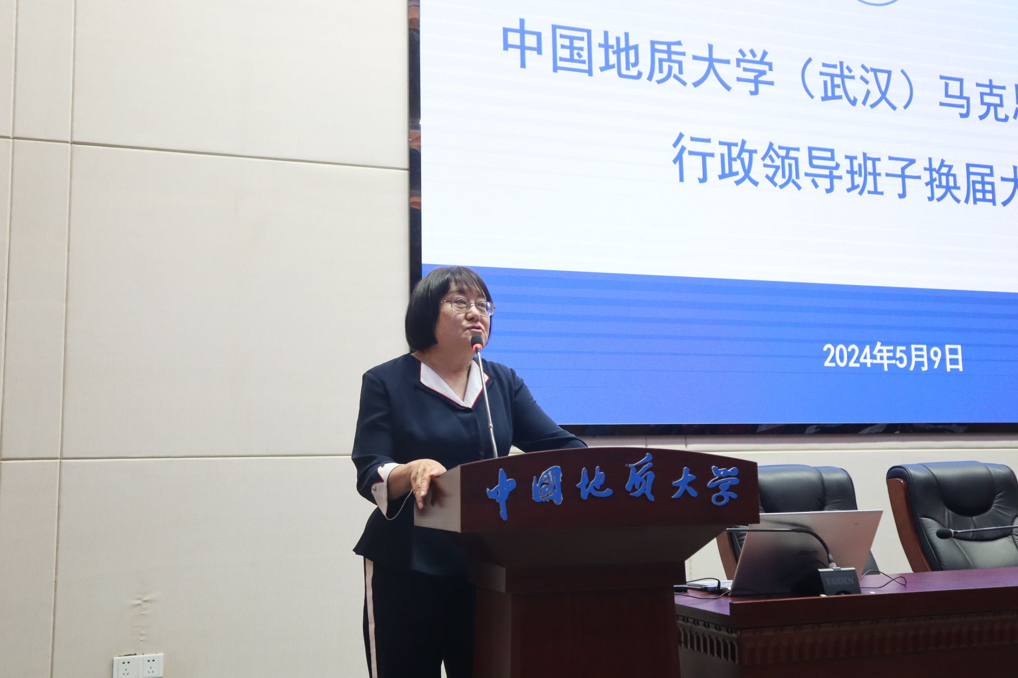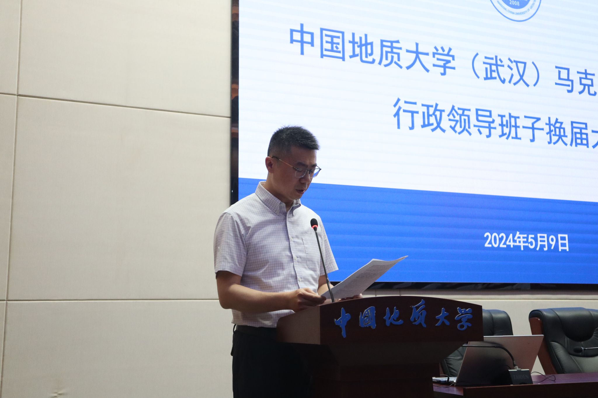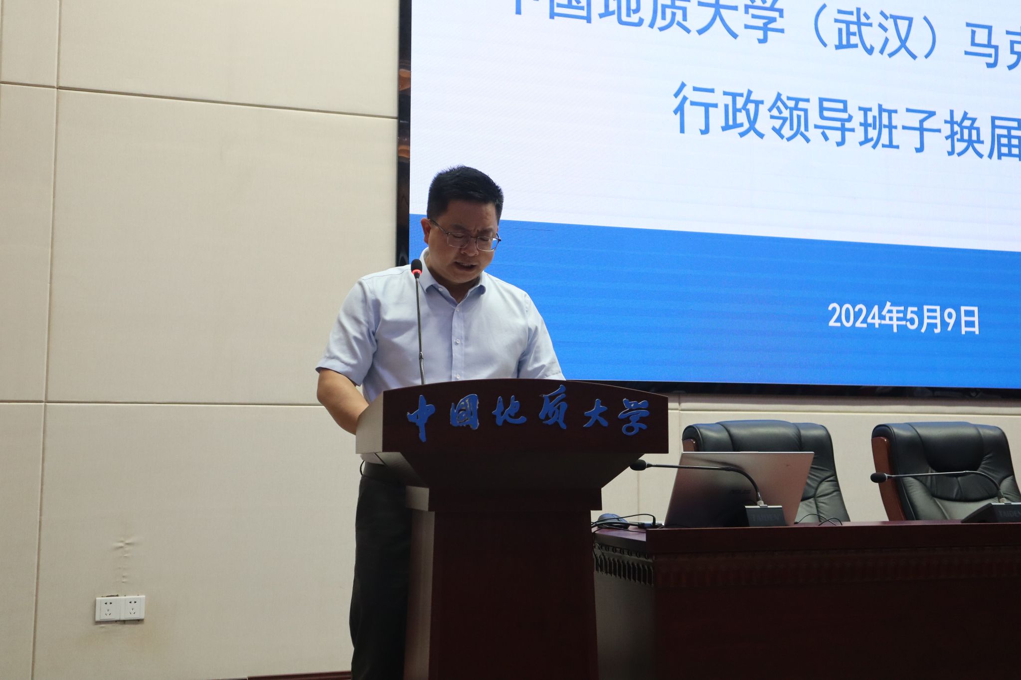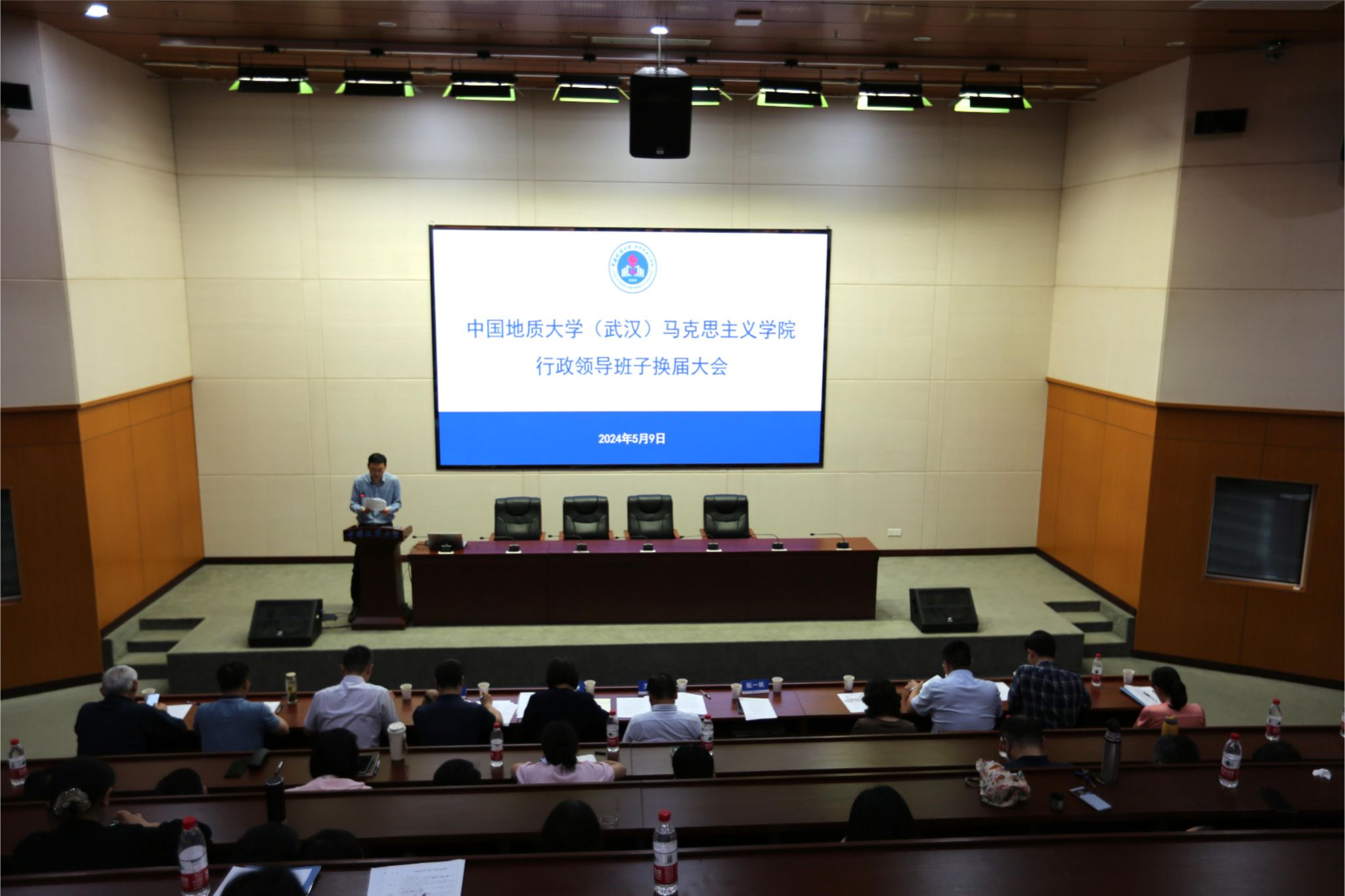 5月9日,在线买世界杯平台行政领导班子换届大会在东区教学综合楼A0116报告厅举行。党委常委、副书记王林清,党委常委、组织部部长陈文武及学院全体教职工、学生代表参加大会。
