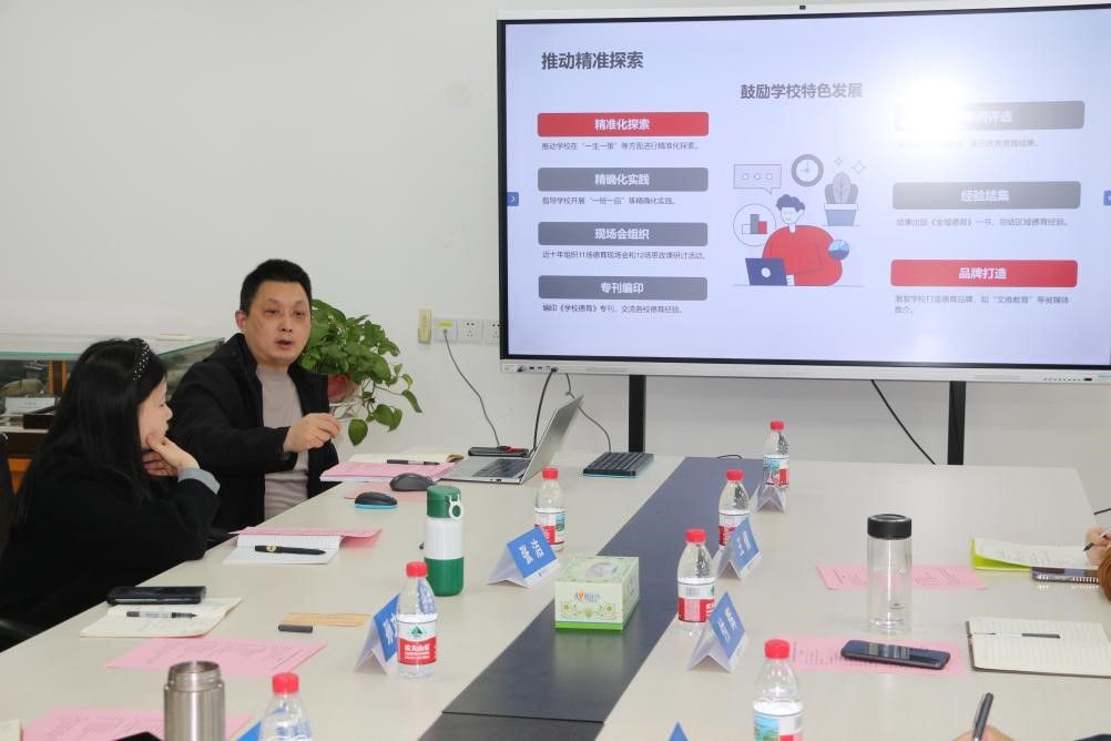 孙文沛作“在线买世界杯平台‘红绿蓝’大中小学思政课一体化共同体”报告。他从“建党精神”“生态文明”“国土安全”三个版块介绍了“红绿蓝”大中小学思政课一体化共同体的建设思路与建设方案,深入剖析各版块在不同学段的侧重点与实施方式,并分享共同体已取得的成果与行之有效的经验策略。