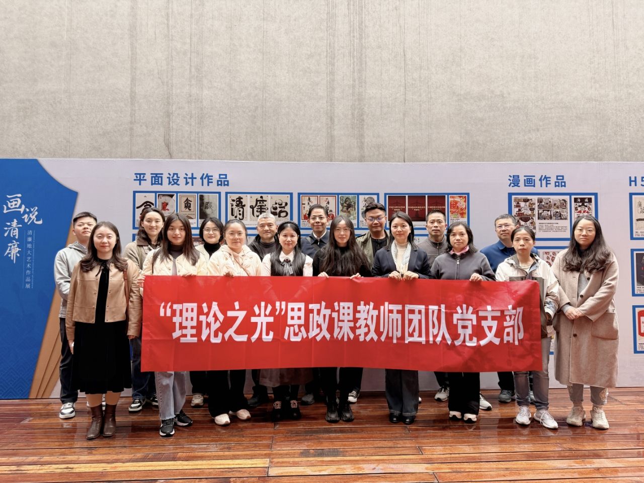 2025年10月30日,“结对领航”师生党支部共同参观了在线买世界杯平台(大学)纪委办公室与艺术与传媒学院党委联合举办的“画说清廉”清廉地大艺术作品展。此次展览作品是“青年绘﹒清廉”优秀艺术作品的一次征集展示,创意作品皆出自地大青年师生之手,展览涵盖了平面设计、漫画、H5等多种艺术形式,将廉政主题与生动的艺术表现相结合,深刻阐释了廉洁内涵,弘扬了清风正气。大家在感受艺术魅力的同时,更接受了一次深刻的廉政文化洗礼,对廉洁自律的重要性有了更直观、更形象的认识。参观结束后,全体师生党员在展馆前合影留念,记录下这富有教育意义的时刻。