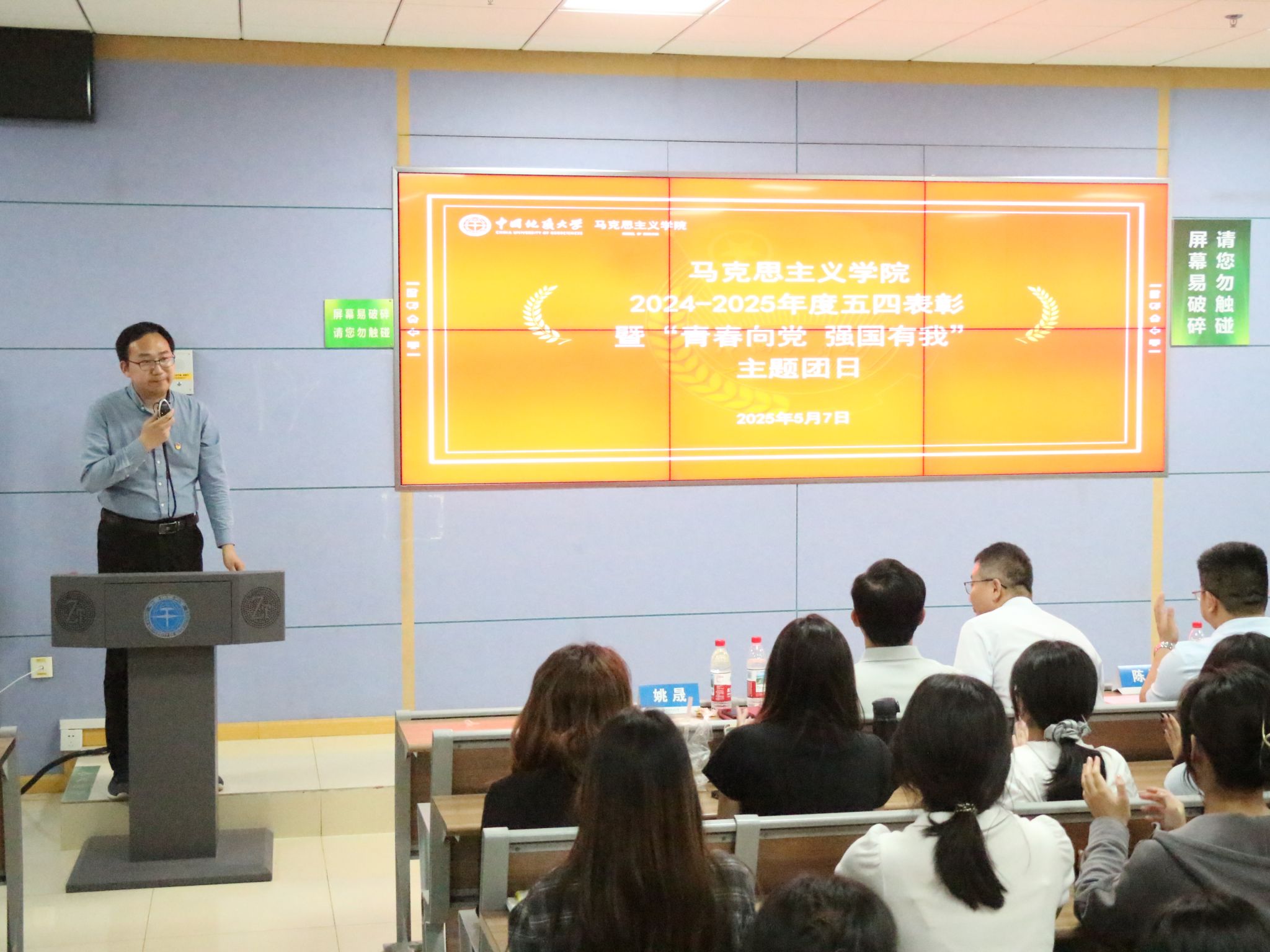 姚晟带领全体人员共唱团歌并通报学院团委工作。武彦斌宣读五四评优表彰文件。学院共表彰红旗团支部、学生标兵、优秀共青团员、优秀共青团干部、优秀志愿服务团队、优秀社团等30余个集体与个人。