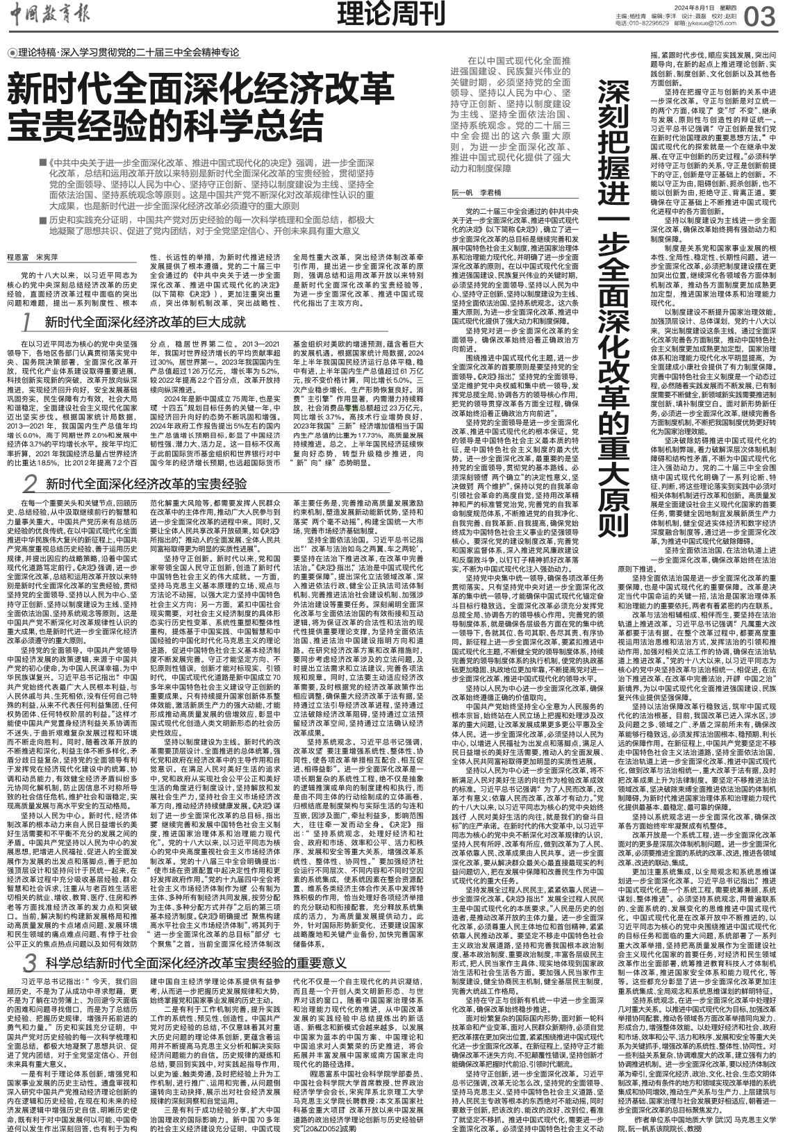 【中国教育报】深刻把握进一步全面深化改革的重大原则
